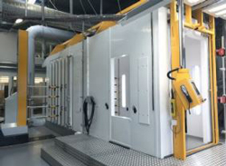 L’utilisation dans le circuit de poudrage de composants parfaitement accordés entre eux permet de garantir continuité et constance du transport de la poudre. L’application par poudrage est réalisée dans des cabines de peinture construites dans une sorte de structure en sandwich qui offre pour avantage que seul un minimum de poudre reste collé aux parois de la cabine et le nettoyage automatique du sol empêche toute accumulation de poudre. L’application par poudrage, commandée par l’opérateur, est réglable depuis un panneau de commande à l’entrée de la cabine de manière à utiliser uniquement la quantité de poudre nécessaire, au bon endroit. La fiabilité de détection des pièces entrantes et des éléments à peindre est donc une condition indispensable. Auparavant, la détection des surfaces de l’objet à peindre - taille, position et inclinaison - était réalisée le plus souvent de façon statique.