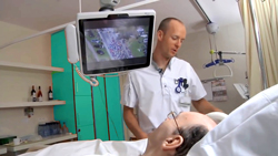 En effet, via un accès sécurisé au dossier patient, le docteur signale ses diagnostics et change la médication directement depuis son interface métier, dans la chambre, et gagne ainsi du temps pour ensuite expliquer par exemple une intervention à l’aide des documents IRM informatisés. L’interface MultiMed facilite également le dialogue à l’aide d’images et graphiques pour les enfants ou pour les personnes ayant perdu l’usage de la parole.