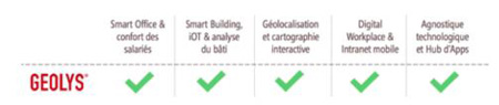 La performance unique de la plate-forme est d’allier Smart Office et Smart Building pour apporter fluidité dans les usages connectés et efficience aux espaces de travail et aux bâtiments.