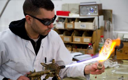 L’innovation scientifique repose notamment sur l’art du souffleur de verre. Les chercheurs, les laboratoires, auront toujours besoin d’outils sur-mesure pour des domaines d’applications très variés. Pour certaines applications, seul un souffleur peut façonner la matière pour créer la pièce unique et indispensable au dispositif. Ici, dans nos ateliers nous n’essayons pas de concurrencer les modèles industrialisés, fabriqués en très grande série. Nous apportons un savoir-faire d’excellence dans l’étude et la réalisation d’instruments en verre. Nous transformons le standard et créons l’unique. Au-delà du soufflage, il existe différents savoirs tout aussi rares et indispensables pour les laboratoires, que nous maîtrisons à la Verrerie Dumas et que nous souhaitons faire perdurer : la gravure traditionnelle, le travail à froid, le jaugeage, le lestage, le sablage, la métallisation, la thermométrie, la métrologie… Et malgré les débouchés, la formation à ces métiers reste minoritaire. Il est donc primordial au sein même de l’entreprise de continuer à se former et à former.