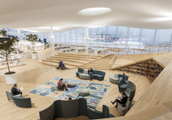Les systèmes d’aération intérieure de lieux publics impliquent diverses exigences supplémentaires, comme le silence opératoire, l’absence de courants d’air et le respect de particularités architecturales. En ce qui concerne la création de la solution intérieure d’Oodi, elle a été réalisée conjointement avec la planification de l’immeuble tout entier, et ce, en étroite collaboration avec les spécialistes en architecture et en systèmes d’immeuble. La technologie de ventilation par déplacement à basse vitesse de l’air, qui assure un environnement sans courants d’air, a été intégrée directement dans l’architecture de l’immeuble et ses installations. Cependant, les plans ont tout de même changé en cours de route, ce qui a eu pour effet d’accentuer le niveau de difficulté des exigences pour le fournisseur d’architecture de la ventilation.