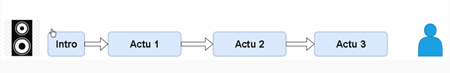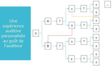Avec Composer, l’utilisateur a le choix sur le scénario du podcast qu’il écoute. Cela permet de “se déplacer” dans un podcast, afin qu’il soit “acteur de sa propre écoute” avec une expérience immersive ; ou encore de “sauter” les passages d’un épisode qui pourraient ne pas l’intéresser (interviews, etc.)