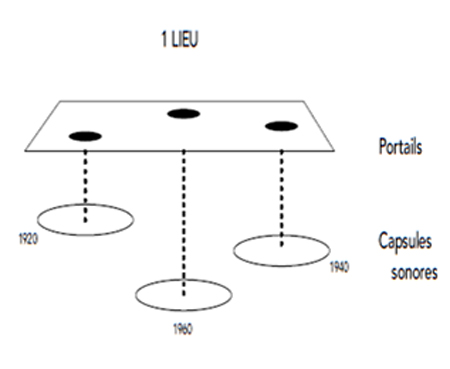 L’idée du projet OSATT est de proposer à l’auditeur, grâce une appli mobile, de découvrir l’histoire d’un lieu à travers une ballade sonore augmentée (avec de simples écouteurs et un smartphone). Tout au long de son parcours physique à travers un site particulier (historique, culturel,…), l’auditeur va passer par des portails temporels (marqués au sol ou grâce à une signalétique particulière et reconnu grâce à un système de puces RFID) et déclencher des capsules sonores sur son système d’écoute, des archives sonores d’il y a 20 ans, 30 ans, 60 ans, des reportages historiques qui vont plonger l’auditeur en immersion totale dans l’histoire avec un grand H ou les plus petites histoires liés à l’endroit où il se trouve précisément.