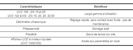 Les systèmes eValveco UVC 102, UVC 103 et UVC 106 sont composés respectivement de vannes à boules motorisées 2,3 et 6 voies ainsi que d’un système de débitmètre à ultrasons.