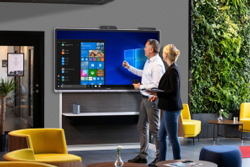 Des démonstrations en direct auront lieu toutes les heures afin de montrer à quel point ce produit peut rendre les réunions en entreprise plus collaboratives et productives. Son port USB-C et la prise en charge des communications sans fil permettent de s’y connecter rapidement, et donc d’éviter les pertes de temps avant le début des réunions ou lors du basculement entre les appareils de différents orateurs. L’écran sera également compatible avec les outils Microsoft couramment utilisés par les organisations, et notamment Office 365.