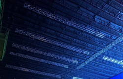 Conformément au schéma de montage, les palans étaient assemblés avec des treillis. Il est possible de renforcer la structure au besoin, cela se faisant pendant le stockage des palans en entrepôt. L’installation complète a duré quatre mois ; pendant cette période un millier de mètres de treillis et 216 palans ont été installés. La capacité de charge du modèle STAGEMAKER SR5 est de 500 kg ; c’est la version D8 avec double frein qui a été utilisée pour ce projet.
