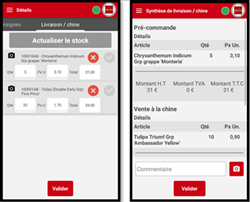 Vente à la chine : au moment de la livraison, le chauffeur-livreur a la possibilité de proposer au client final un complément de marchandise disponible dans le véhicule et/ou un service additionnel. Une fois la commande enregistrée, il peut soit établir une facture, soit encaisser tout ou partie du règlement dû s’il dispose du module complémentaire « encaissement ».