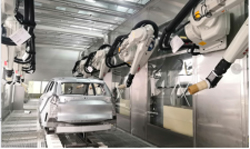 Cette technologie est utilisée sur l’ensemble du site pour assurer une efficacité maximale. Par exemple, les composants sont livrés automatiquement au poste d’assemblage par des transporteurs autonomes à guidage optique, dont les trajets et les délais de livraison sont dictés par l’usine virtuelle dans le cloud. Dans l’atelier de carrosserie, 410 robots assemblent les composants de châssis et les panneaux de carrosserie à l’aide de techniques innovantes qui permettent à AIWAYS d’assembler de l’acier et de l’aluminium, produisant ainsi 20 caisses de carrosserie par heure.