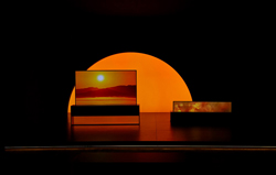 Destinée à représenter à la fois un logement et une galerie, l’installation montre comment un téléviseur futuriste de LG transforme l’espace en home cinéma grand écran lorsqu’il se trouve en mode Full View, ou devient un objet d’art à part entière lorsque l’écran est en mode Zero View, caché dans sa base en aluminium brossé. La lumière diffusée à travers les fenêtres découpées dans les murs de l’installation imite les déplacements et variations d’intensité des rayons du soleil au fil de la journée pour évoquer le temps qui passe. Afin de montrer que la technologie LG s’adapte aux rythmes de vie, l’écran enroulable se déploie quand l’environnement est lumineux et bruyant, puis disparaît lorsque la lumière et le bruit diminuent.
