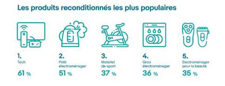 Acheter des produits remis à neuf est une réalité pour 36% des Français. Parmi ceux-ci, les plus jeunes sont les plus susceptibles de posséder un produit reconditionné. En effet, plus de la moitié des 18-24 ans disent en avoir déjà acheté au moins un notamment pour des raisons d’économies.