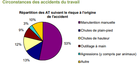 Comme nous le démontre ces diagrammes provenant de la CNAMTS, la « manutention manuelle » est le principal facteur de risque. Le marché sur lequel évolue les produits WeeSafe.