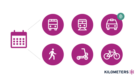 kilometers permet à ses utilisateurs d’anticiper leurs besoins de mobilité : l’application récupère l’information sur les déplacements à venir, les optimise et propose des solutions de transport à impact environnemental réduit.