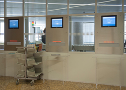 Un système adapté pour la Bibliothèque Mériadeck de Bordeaux, la tête du réseau : Mise à disposition des adhérents à l’intérieur du bâtiment, la solution de retour automatisé avec tri des documents se compose d’un robot à 3 façades. Ce dispositif permet de faire face aux pics de retours en heures de pointe, notamment grâce à sa capacité de gestion d’environ 2 000 ouvrages par heure. Les retours sont répartis dans 8 bacs différents pour une meilleure organisation facilitant ensuite la remise en rayon. 75% des plus d’un million de documents conservés par la bibliothèque peuvent être retournés de cette façon, les 25% restants étant des documents précieux ou incompatibles avec les bacs en raison de leurs dimensions.