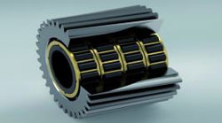 Dans certaines applications, on utilise des roulements intégrés à quatre rangées de rouleaux cylindriques. Combiné à quatre pignons planétaires par étage, un ensemble de roulements comporte au total 16 rangées. Pour obtenir une charge encore plus élevée sur la totalité des roulements, l’alésage et les diamètres circonscrits de l ́ensemble ont des tolérances très serrées.
