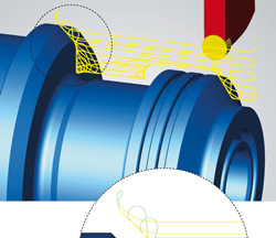 Pour les opérations d’ébauche en tournage, OPEN MIND a implémenté un nouveau mode haute-performance. L’entreprise a appliqué le concept éprouvé du fraisage trochoïdal au tournage. Les liaisons optimisées et les mouvements fluides de la machine garantissent un usinage aux performances élevées. L’utilisateur bénéficie d’une meilleure sécurité des opérations et d’un temps d’usinage réduit grâce au procédé spécial de plongée de la plaquette dans le matériau.