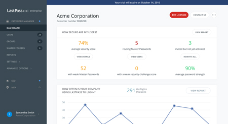 LastPass Enterprise : Solution simple pour sécuriser tous les points d’accès, LastPass Enterprise intègre désormais la technologie SSO (Single Sign-on) avec un solide catalogue de plus de 1200 applications pré-intégrées, en plus de ses capacités de gestion des mots de passe qui sont reconnues sur le marché.