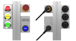 La gamme RAMO inclut des boutons poussoirs, des commutateurs d’arrêt d’urgence, sélecteurs et à clé et des voyants de signalisation à connecteur M12, ainsi que des passages USB 3.0 et RJ45 déportés en façade.