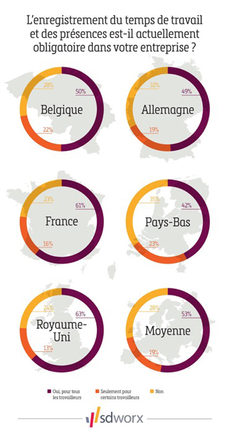 La Belgique obtient le second résultat le plus bas de tous les pays sondés en matière d’enregistrement obligatoire du temps de travail et des présences.