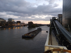 En moyenne, environ 2500 tonnes de déblais devraient être extraites et chargées chaque jour pendant la durée des travaux sur les barges de CFT. Sachant que le transport fluvial permet de réduire les émissions de CO² mais aussi les nuisances liées à la circulation des camions : chaque convoi de 5000 tonnes transporte ainsi l’équivalent de 220 camions !