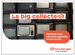 A l’occasion de la semaine du développement durable 2019, Boulanger a mobilisé ses clients et ses collaborateurs à travers une opération nationale autour de la seconde vie donnée aux produits en partenariat avec Eco-Systèmes et Emmaüs, pour une consommation plus responsable et solidaire : la Big Collecte.