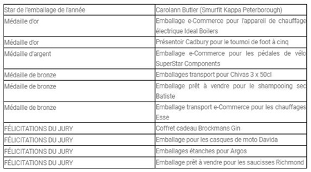 Le leader de l’emballage a remporté deux médailles d’or, une d’argent, trois de bronze, quatre félicitations du jury et un prix spécial. Le prix « Star de l’emballage de l’année » a été décerné à Carolann Butler, concepteur de Smurfit Kappa, pour son emballage « Touch Box » destiné aux appareils de chauffage électrique. Cet emballage recyclable élimine le recours au papier bulle en plastique et a été décrit par les juges comme un « emballage parfait pour le e-Commerce ».