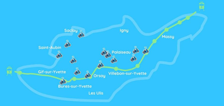 À partir du mois de septembre, 500 vélos électriques partagés seront progressivement mis à disposition sur une zone couvrant les communes de Massy, Palaiseau, Villebon-sur-Yvette, Igny, Vauhallan, Saclay, Saint-Aubin, Orsay, Bures-sur-Yvette, Gif-sur-Yvette et Les Ulis. Des discussions sont également en cours afin d’étendre la zone d’utilisation du service vers Vélizy, Saint-Quentin-en-Yvelines, Antony et Orly dès 2020, et de proposer le premier service de mobilité partagée inter-agglomérations de la région Île-de-France.