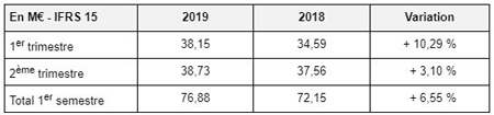 Publication des résultats semestriels le 20 septembre 2019 (après bourse).