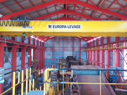 Verlinde : parlez-nous de votre activité : « Nous nous occupons aussi bien des projets standards que des projets plus particuliers. A ce jour, nous avons réalisés plus de 1400 ponts roulants. Cela montre notre dynamisme. Les capacités de levage peuvent atteindre 250 tonnes et des portées jusqu’à 34 mètres. Europa-levage fournit également des palans manuels, électriques (à chaîne, à câble, ou à sangle), antidéflagrants et autres engins de levage tels que des portiques, semi-portiques, potences, treuil, etc. Et assure la maintenance, la transformation et la réparation d’installations existantes. Le temps de construction d’un pont roulant varie selon différents critères comme la taille, cela peut aller de deux jours à trois mois pour les plus imposants. »