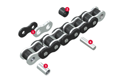 Plaques intérieures et extérieures de chaîne (en haut à gauche) : le traitement hautes performances offre une protection anticorrosion exceptionnelle