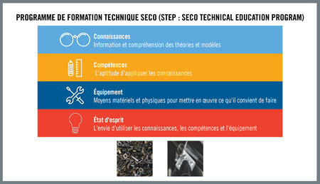 L’expérience en atelier peut être complétée par des initiatives organisées, telles que le programme de formation technique Seco (STEP, Seco Technical Education Program). Celui-ci, complet et pratique, est conçu pour familiariser les utilisateurs avec les derniers systèmes d’outillages et techniques d’usinage.