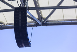 L’enceinte K2, la plus légère de sa catégorie, offre une portée exceptionnelle permettant de s’adapter avec souplesse aux architectures originales et atypiques comme le stade Orange Vélodrome. Dans ce cas, la toiture, en forme de vagues et donc de hauteur variable par rapport aux spectateurs, a fait l’objet d’une étude spécifique afin d’optimiser les points d’accrochage des 15 lignes d’enceintes K2.