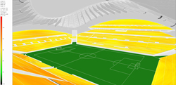L’installation, conçue spécifiquement pour le stade a été modélisée à l’aide de L-Acoustics Soundvision, un outil numérique puissant de simulation acoustique et mécanique permettant de visualiser en 3D la couverture sonore du stade en partant d’une représentation virtuelle du lieu.