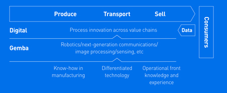 En japonais, le mot « gemba » signifie « là où se trouve la réalité ». En d’autres termes, il s’agit pour les entreprises de l’endroit où la valeur ajoutée est créée et du lieu où les problèmes doivent être résolus. L’initiative Gemba Process Innovation s’inspire de philosophies de transformation d’entreprise au succès avéré telles que le modèle Kaizen. Elle contribue à optimiser le flux d’informations entre les technologies et les personnes d’une entreprise sur ses fronts opérationnels, notamment à l’usine, en entrepôt et aux points de vente.