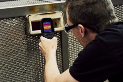 La FLIR TG297 vous libère des limites associées aux thermomètres infrarouges (IR) monopoint en permettant à l’utilisateur de voir les points chauds et froids révélateurs d’un problème éventuel et d’en identifier la cause. Les utilisateurs peuvent tout inspecter avec rapidité et précision, des connexions électriques aux pannes mécaniques, à l’aide d’une plage de température comprise entre 25 et 1030 degrés Celsius (C) (13 et 1886 degrés Fahrenheit). En général, les températures élevées s’affichent en blanc sur les images thermiques, mais la FLIR TG297 dispose d’un filtre hautes températures amovible qui améliore la plage de mesure dynamique des données thermiques. Une fois le filtre positionné, les utilisateurs peuvent voir les variations de couleurs qui indiquent les différences aux valeurs extrêmes de la plage de température de la caméra.