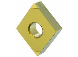 Revêtement PVD de couleur jaune, permettant d’identifier facilement l’arête usée lors de l’indexage de la plaquette, des arêtes de coupe numérotées empêchant l’opérateur de la machine de passer par inadvertance à une arête usée.