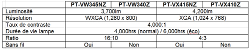 Cette nouvelle gamme comporte deux modèles avec connexion sans fil, le PT-VW345N et le PT-VX415N, ainsi que deux modèles standards, le PT-VW340 et le PT-VX410.