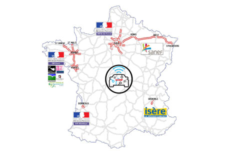 SCOOP vise à déployer 3000 véhicules sur 2000 km de routes répartis en cinq sites : Ile-de-France, A4, Isère, rocade de Bordeaux et Bretagne.
