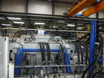 Au final, Parker a eu un rôle notable dans ce projet. C’est lui qui a défini l’hydraulique ainsi que l’asservissement des fonctions principales pilon et tiroir de la presse. Le groupe a fourni la connectique complète de la presse incluant les raccords et les flexibles hydrauliques ainsi que l’outillage et la sertisseuse nécessaire au montage. Il a également équipé la presse de pompes hydrauliques à pistons tandem (PV180 + PV046), a géré la distribution hydraulique en fournissant les cinq servo-distributeurs proportionnels (cetop8-D91FP) et a participé à la programmation de la carte d’axe électronique (type COMPAX 3F) qui assure la gestion du mouvement et asservit les fonctions pilon et tiroir. Enfin, Parker a été présent au moment des tests machine en assurant l’assistance à la mise en service de la presse pour les aspects hydraulique et automatisme.