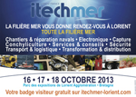 La 10ème édition du Salon Itechmer sera inaugurée Mercredi 16 octobre à 17h30 par Messieurs Pierrick Massiot, Président du Conseil régional de Bretagne, François Goulard, Président du Conseil général du Morbihan, Norbert Métairie, Président de Lorient Agglomération, Maire de Lorient et conseiller général du Morbihan, Daniel Gilles, Président-directeur général de la SEGEPEX, Vice-président du Conseil régional de Bretagne, Maurice Benoish, Président délégué d’Itechmer 2013, en présence de Monsieur Frédéric Cuvillier, Ministre des Transports, de la Mer et de la Pêche. L’inauguration sera suivie de la remise des Trophées de l’Innovation et d’un cocktail.