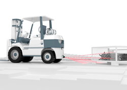 Le R2300 affiche un angle d’ouverture de plage de mesure de 100°, une portée considérable pouvant atteindre dix mètres avec les objets lumineux et quatre mètres sur les surfaces sombres, une fréquence de mesure de 50 kHz et des fréquences de balayage de 12,5 Hz et 25 Hz au choix, avec un maximum de 4 000 pixels par balayage. Ces caractéristiques garantissent sa compatibilité avec un grand nombre d’applications. Par ailleurs, le champ de surveillance peut être personnalisé, soit en masquant de manière sélective certaines zones hors du champ de détection, soit en installant un deuxième R2300 à côté du premier pour porter le champ de vision à 180°. Le R2300 se distingue des autres capteurs 3D par sa résolution angulaire extrêmement fine : seulement 0,1°. À l’heure actuelle, aucun autre capteur LiDAR ou multicouche comparable n’affiche une telle précision. Associé au faisceau infrarouge précis caractéristique des lasers, le R2300 est capable de détecter avec fiabilité la structure et les contours des objets.