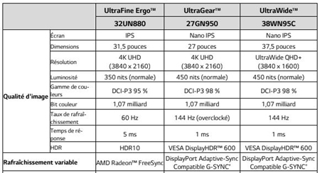 « Notre gamme de moniteurs 2020 dépasse les attentes, avec des performances, une qualité d’image et des vitesses de niveau professionnel », a déclaré Jang Ik-hwan, responsable de la division IT de LG. « Le concept LG Ergo est une nouvelle proposition de valeur pour l’utilisateur, dont il assure le confort et le bien-être avec son support réglable unique, tandis que le modèle UltraGearTM 4K 27 pouces offre une qualité d’image supérieure pour une expérience de gaming optimale, et que le modèle UltraWideTM 38 pouces capitalise sur l’excellence des écrans 21/9ème de LG. »