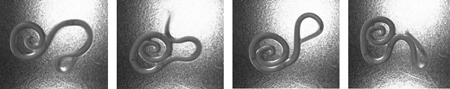 La caméra du VTD fournit des séries de 2 images par seconde, d’où sont déduites des formes statiques et dynamiques. Elles servent de paramètre de décision pour la suite du traitement. Dans les séries d’images, différentes larves sont identifiées, leurs contours 2D sont déterminés et les données géométriques sont représentées selon l’hypothèse (réaliste) d’une section circulaire sur un modèle de membrane 3D du parasite marin. Avec ce modèle, les propriétés mécaniques des larves - en particulier leurs énergies de courbure sont calculées en tenant compte de détails biologiques. La capture d’images permet de déterminer de manière fiable et reproductible la vitalité, indépendamment des mouvements et des évaluations visuelles d’experts.
