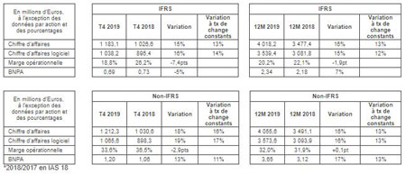 Croissance de 13% du chiffre d’affaires non-IFRS en 2019 à 4,06 milliards d’euros et BNPA non-IFRS en hausse de 17% (13% à taux de change constants) à 3,65 euros