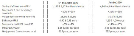 Annonce des objectifs financiers non-IFRS 2020 : croissance du chiffre d’affaires comprise entre 21% et 23% à taux de change constants, croissance du BNPA de 14% à 15%, soit entre 4,15 et 4,20 euros