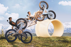 La structure spéciale du train roulant d’Urmel avait besoin de paliers résistants à l’usure, aussi sous forme de solutions spéciales. C’est la raison pour laquelle les frères Hoepner ont choisi des paliers lisses et des ébauches igus. « Avec du polymère hautes performances iglidur J, nous avons usiné nous-mêmes des rondelles et des paliers à collerette qui sont utilisés dans la suspension de l’essieu principal, dans les pédales ou dans le tirant par exemple », explique Paul Hoepner. Sans graisse, l’iglidur J se distingue surtout aussi par son faible coefficient de frottement. Les inventeurs ont aussi misé sur des paliers lisses en iglidur G, un matériau universel, pour la direction, les roues, le logement des câbles d’entraînement et celui de l’arbre d’entraînement. Pour assurer le logement sans usure des vitesses dans un espace réduit, ils ont choisi des films lisses igus. Le tribo-ruban résistant à l’usure en matériau iglidur A160 conforme aux exigences du FDA réduit le frottement des pièces métalliques et avec lui l’énergie nécessaire pour l’entraînement.