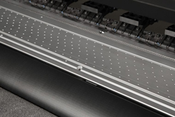 La capacité de la Mimaki Tx300P-1800 MkII à basculer entre l’impression directe sur textile et l’impression transfert repose sur des platines interchangeables. Lors d’une impression directe sur textile, le surplus d’encre qui pénètre à travers le tissu est drainé par une platine dotée d’un canal de collecte d’encre. Pour passer à l’impression par transfert thermique sur papier, il suffit de remplacer cette platine par une platine aspirante. L’échange se fait rapidement et facilement, sans nécessité l’intervention de techniciens. L’imprimante hybride prend également en charge à la fois les jeux d’encres unidirectionnels classiques, configurés avec cinq types d’encres, et les combinaisons d’encres variées, d’où une souplesse inégalée. Les utilisateurs peuvent ainsi faire leur choix parmi trois combinaisons d’encres différentes pigment textile/sublimation directe, pigment textile/transfert à sublimation ou sublimation directe/transfert à sublimation afin d’assurer des résultats optimaux à travers diverses applications.