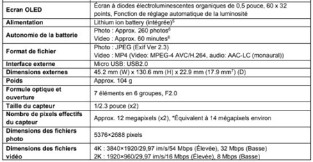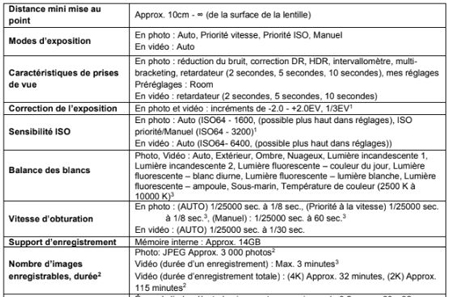 1. Le RICOH THETA SC2 « Business » est équipé d’un groupe optique compact, composé de deux optiques à grande ouverture F2.0 et d’un capteur dernière génération pour délivrer des images et des vidéos sphériques en 360° d’une définition d’approximativement 14 MP. Les algorithmes de précision d’exposition et de balance des blancs ont été complètement retravaillés et offrent une expression naturelle et précise lors de la prise de vue en mode automatique. De plus, un processeur de traitement de l’image et un capteur optimisé permettent désormais de réaliser des vidéos haute résolution 4K (3840 x 1920 pixels) à 30 ips (images par seconde) pendant trois minutes au maximum, ce qui équivaut à des caméras haut de gamme.