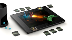 SquareOne identifie les objets, leurs positions et leurs orientations : Mouvoir et orienter les figurines, lancer les dés, positionner les cartes, chaque accessoire, chaque mouvement est reconnu numériquement et affiché à l’écran en temps réel. Lorsqu’elles sont placées sur la console, les cartes lancent automatiquement le jeu associé. Les figurines physiques, les cartes et les dés multiples, éléments importants du RPG agissent comme des manettes de jeu connectés et interagissent avec la console, pour déclencher des effets vidéo et audio. La console comprend une piste de dés brevetée qui détecte les dés standards grâce à une technologie optique. Optimisée pour gérer jusqu’à 6 dés de 16 mm, elle lit automatiquement le score des dés allant jusqu’à 20 faces, même dans des environnements sombres. Elle peut prendre la forme d’une tour de dés propre au RPG, et est entièrement personnalisable en fonction du jeu choisi. Les dés sont passifs, sans batterie intégrée.
