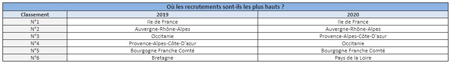 Déjà en 2019, l’Ile de France arrivait en tête, suivie de l’Auvergne-Rhône-Alpes. C’est encore le cas en 2020. En revanche la région Provence-Alpes-Côte-D’azur prend la place de l’Occitanie. Enfin, rien de ne change pour la Bourgogne Franche Comté alors que la région des Pays de la Loire remonte en tête en fait disparaître la Bretagne.