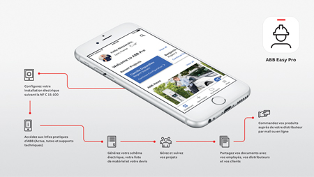 En tant que fournisseur de matériel de distribution et de protection électrique, ABB décide d’accompagner ses clients de façon efficace et adaptée aux besoins actuels du métier. De ce fait, ABB met à disposition son premier assistant mobile, disponible sur Android et iOS et exclusivement dédié aux artisans électriciens.